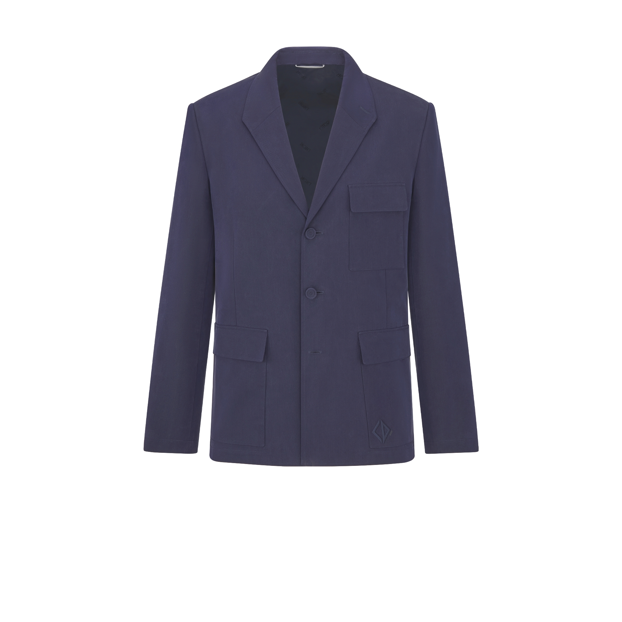 The jacket showcases the House's savoir-faire and traditions with an understated and elegant style. Made in navy blue cotton-blend twill, it features a tonal CD Diamond embroidery, as well as three flap pockets. The jacket can be coordinated with the matching Bermuda shorts to complete a contemporary look. Tonal CD Diamond embroidery. Single-breasted with three fabric-covered buttons. Three flap patch pockets. 65% cotton, 35% polyester and lining: 100% polyamide. Made in Italy