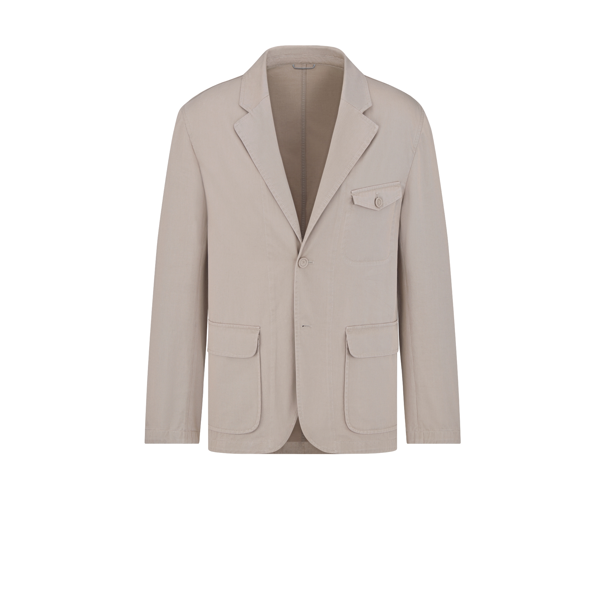 The jacket showcases the Christian Dior Couture embroidery on the interior, embellished with a lily of the valley flower in homage to Mr. Dior's passion for flowers. Crafted in beige cotton gabardine, it features a relaxed silhouette with buttoned flap pockets and a notched lapel collar. The jacket can be worn with the matching pants to create a signature look. Christian Dior Couture Lily of the Valley embroidery on the interior. Single-breasted with two fabric-covered buttons. Notch lapels. Buttoned flap pockets. 100% cotton. Made in Italy