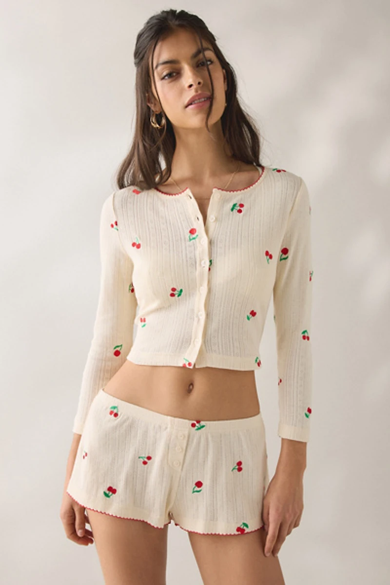 Jacquie The Label Yara Cherry Embroidered Pointelle Crop Cardigan in Bloomington, MN