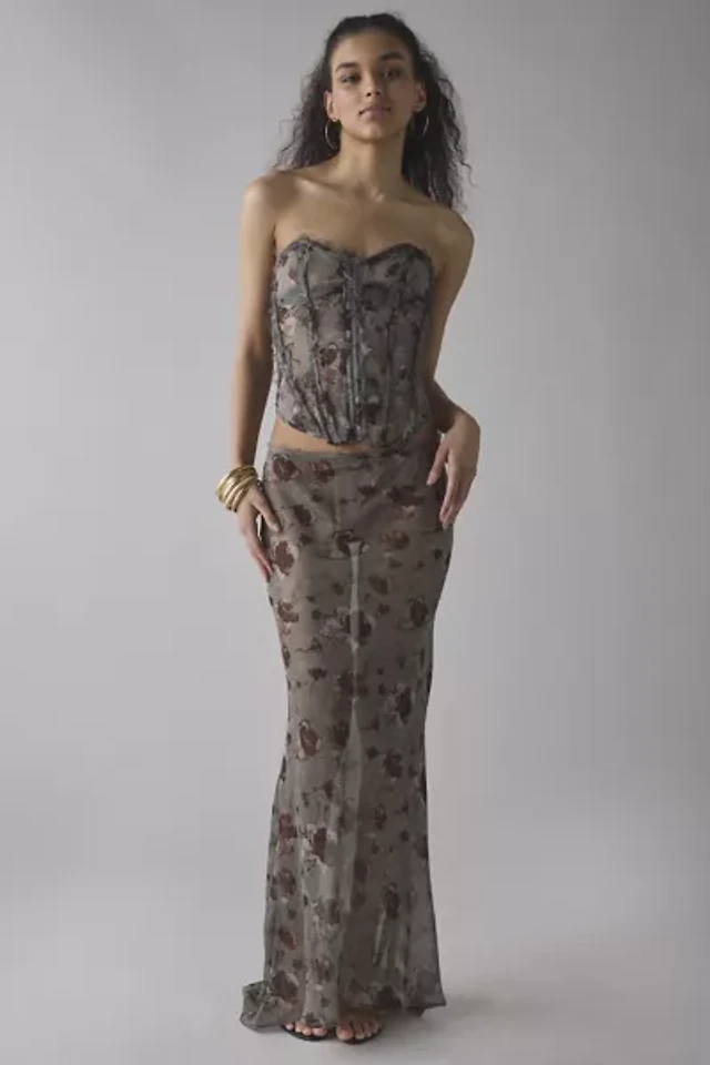 Jaded London Cibele Semi-Sheer Floral Organza Maxi Skirt