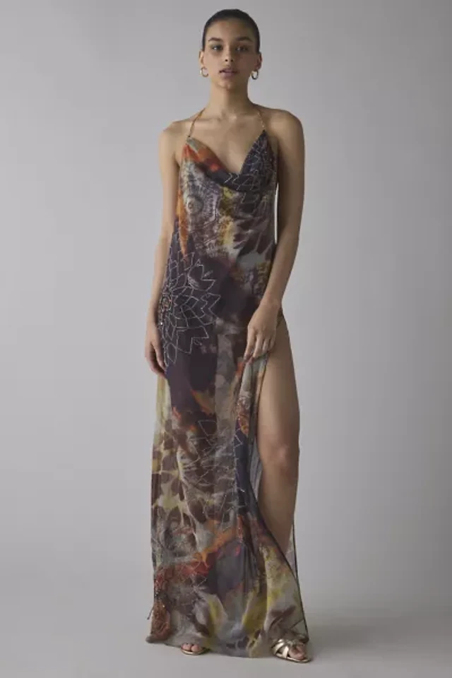 Jaded London Dahlia Cowl Neck Hand-Beaded Chiffon Maxi Dress