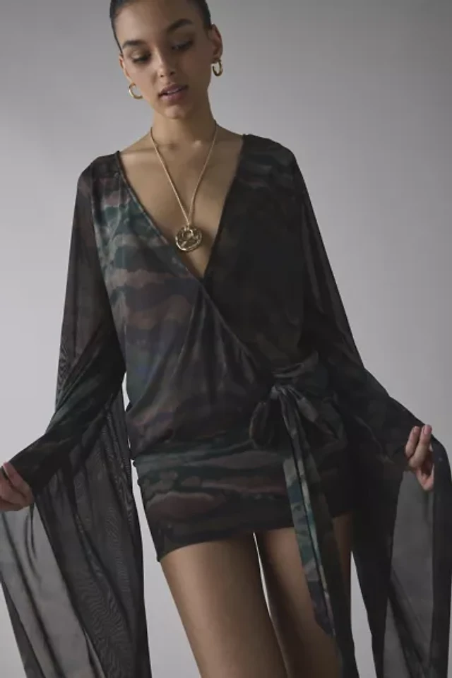 Jaded London Draped XXL Sleeve Semi-Sheer Mini Dress
