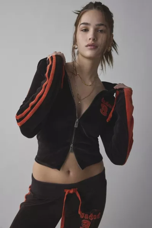 Jaded London Stripe Velour Fitted Hoodie Sweatshirt