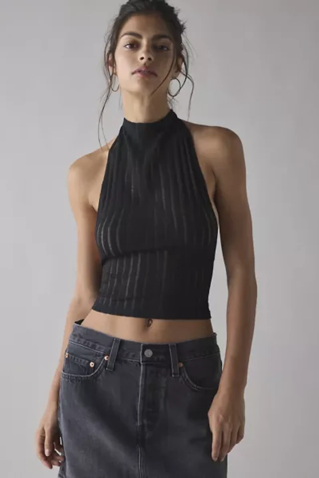 Jaded London Zene Semi-Sheer Knit Backless Buckle Halter Top
