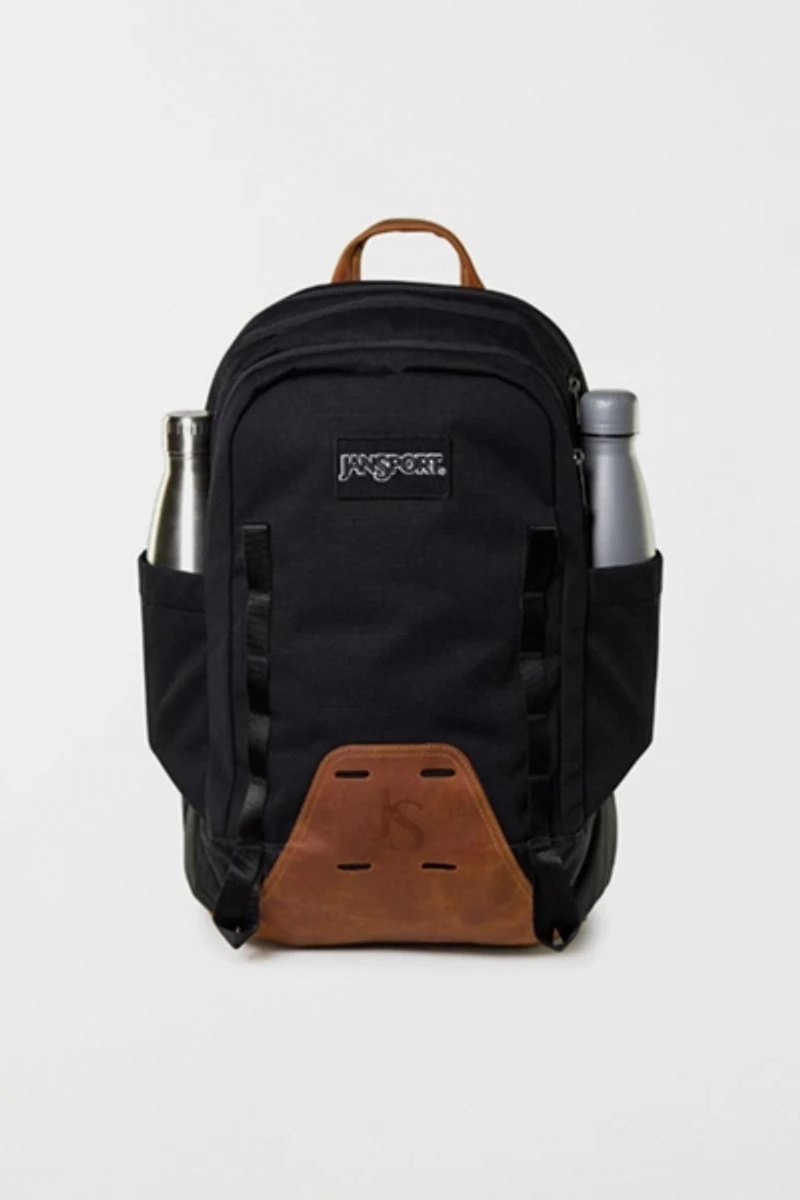 Part of the Clutch Series, inspired by JanSport's early days in a Seattle transmission shop. The Pitstop Daypack blends classic style with durable craftsmanship, featuring tightly woven ripstop canvas and a full leather bottom embossed with the JS logo. Seatbelt-style straps and the back panel channel old-school car upholstery, while dual water bottle pockets, multiple zippered compartments, and a trolley strap make every pitstop run like a well-oiled machine.