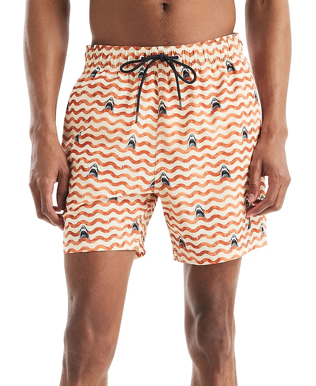 Jaws x Nautica Men's Classic-Fit Active Stretch Quick-Dry Printed 6" Swim Trunks