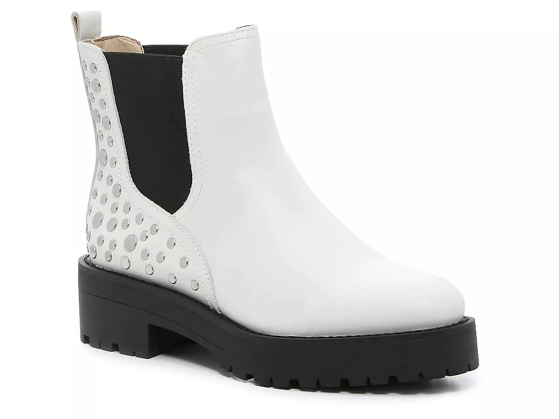 Add eye-catching appeal to your cool weather looks with the Jayln Chelsea boot from Sam Edelman. This platform ankle bootie features flat studs embellishing the heel counter for a touch of shine.