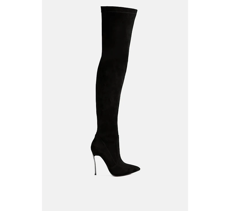 Purchasing the Stretch Suede Micro High Knee Boots, which fit so well that you can wear them anywhere, is a wise monetary investment. They are always in style and can be worn with a variety of fashion styles, and their Elasticated Gusset provides a perfect fit to your foot and is easy to wear with its side zipper opening.Outer material: Stretch Suede MicroLining Material: SyntheticOuter sole: TPRClosed Pointed ToeLong Boots for WomenMetallic Pointed High HeelsSide Zipper OpeningHigh Knee High Heel BootsSH3306