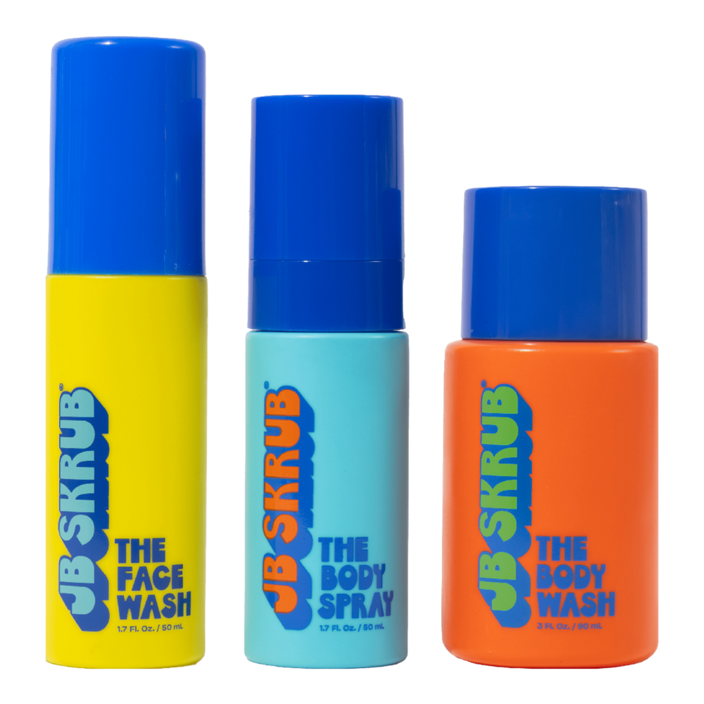Travel-Size Face & Body Set for Tweens a. Benefits: Complete 3-step On-The-Go system Face, body, and freshness in junior sizes. TSA-approved travel sizes Perfect for planes, overnight trips, summer camp, sport tournaments and vacations. Dermatologist-approved gentle formulas Safe for teen and tween sensitive skin. Fits anywhere Gym bags, backpacks, sleepover bags, and suitcases. Try-before-you-buy Perfect introduction to JB SKRUB products. Clean ingredients Free from harsh sulfates, parabens, and synthetic fragrances. pH-balanced formulas Maintain a healthy skin barrier while cleansing effectively. Includes: JB SKRUB Face Wash (50 mL) - Gentle face wash for teens that cleanses without over-drying. This pH-balanced teen face cleanser removes dirt, oil, and sweat while maintaining skin's natural moisture barrier - and is especially safe for sensitive skin. Aloe Vera helps soothe, Chia Seed provides Omega 3 & 6, while Green Tea offers antioxidants. Willowherb helps defend and nourishes for clear, healthy skin. Yuka Rating - 93/100, Excellent. JB SKRUB Body Wash (90 mL) - Prebiotic-infused body wash for teens and tweens that gently cleanses while hydrating skin. This pH-balanced teen body wash removes sweat and dirt without over-drying, making it perfect for post-workout showers and daily hygiene routines. Packed with Aloe Vera, Chia Seed, and Green Tea, our body wash gently hydrates and protects sensitive, developing skin. Yuka Rating - 79/100, Excellent. JB SKRUB Body Spray (50 mL) - Aluminum and synthetic fragrance free deodorizing body spray for teens and tweens with a fresh orange citrus scent. Neutralizes body odor, gentle on skin and perfect for active teens. Powered by Zinc Ricinoleate to neutralize odor and Aloe Vera + Chia Seed for hydration. Lightweight formula won't clog pores or leave sticky residue - just clean, confident freshness. Yuka Rating - 72/100, Good. Formulated Without: No Synthetic Fragrance. Sulfate Free. Paraben Free. Silicone Free. Phthalate Free. Gluten Free. Cruelty Free. Formulated without over 2,000 ingredients to meet strict EU standards.