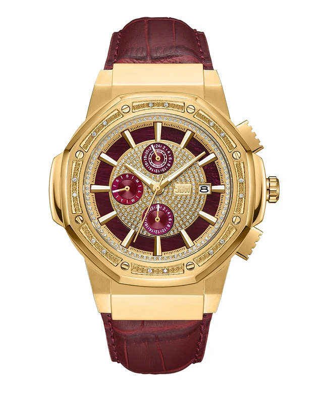 Jbw Men's Saxon Multifunction Maroon Genuine Leather Watch, 48mm
