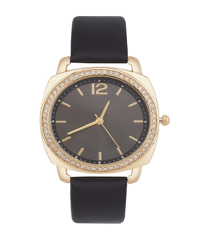 Jessica Carlyle Women's Analog, Three-Hand Quartz Black Polyurethane Strap Watch 34mm Gift Set