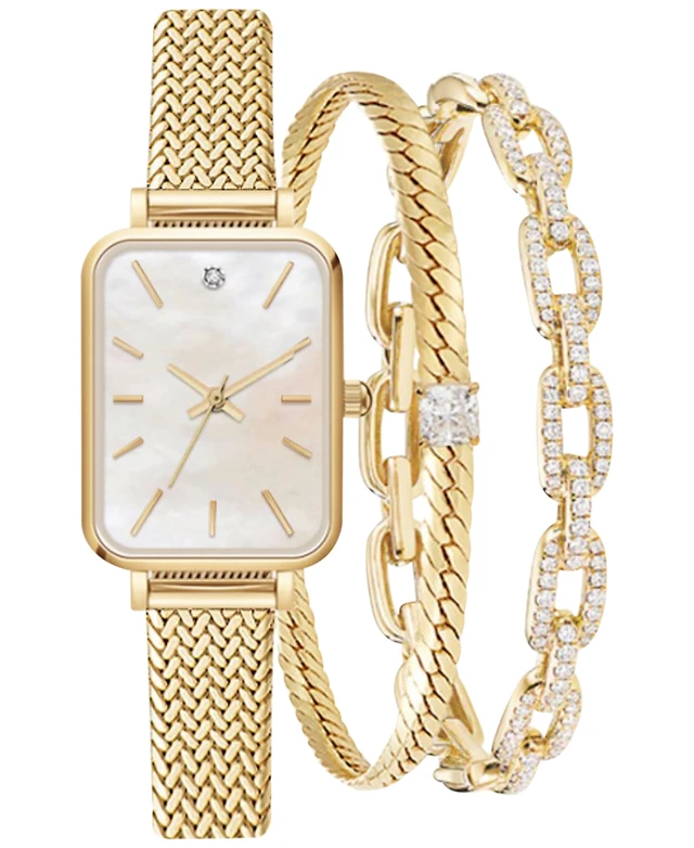Jessica Carlyle Women's Gold-Tone Mesh Bracelet Watch 23mm Gift Set