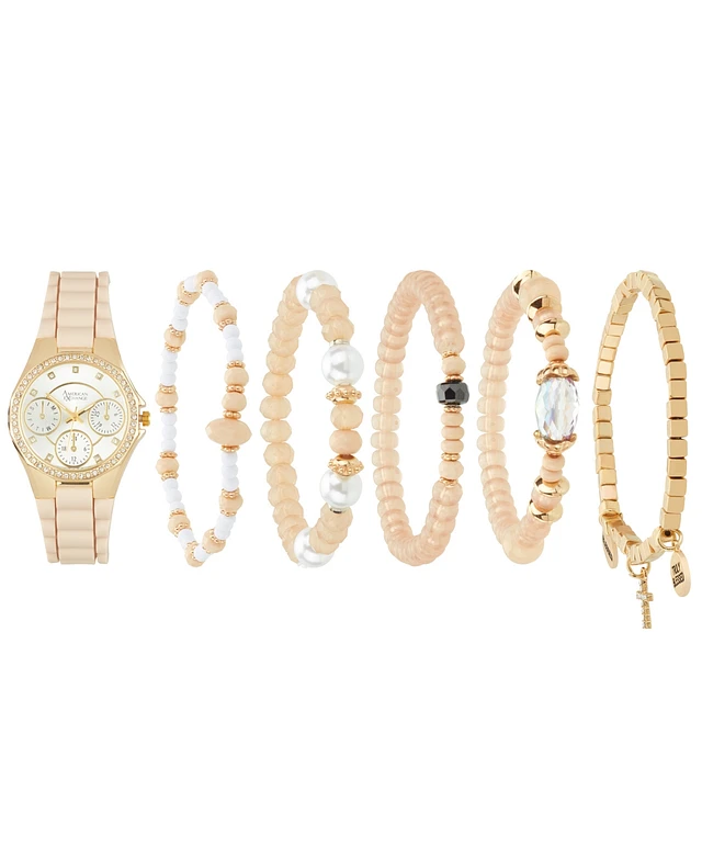 Jessica Carlyle Women's Analog Shiny Silver-Tone Metal Strap Watch 34mm 5 Pieces Bracelet Gift Set
