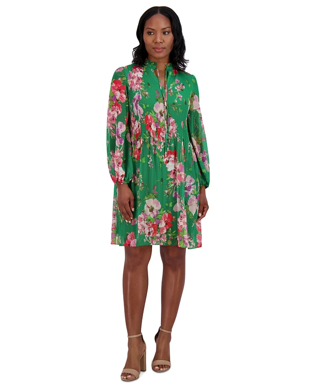 Jessica Howard Women's Chiffon Pleated Floral-Print Dress