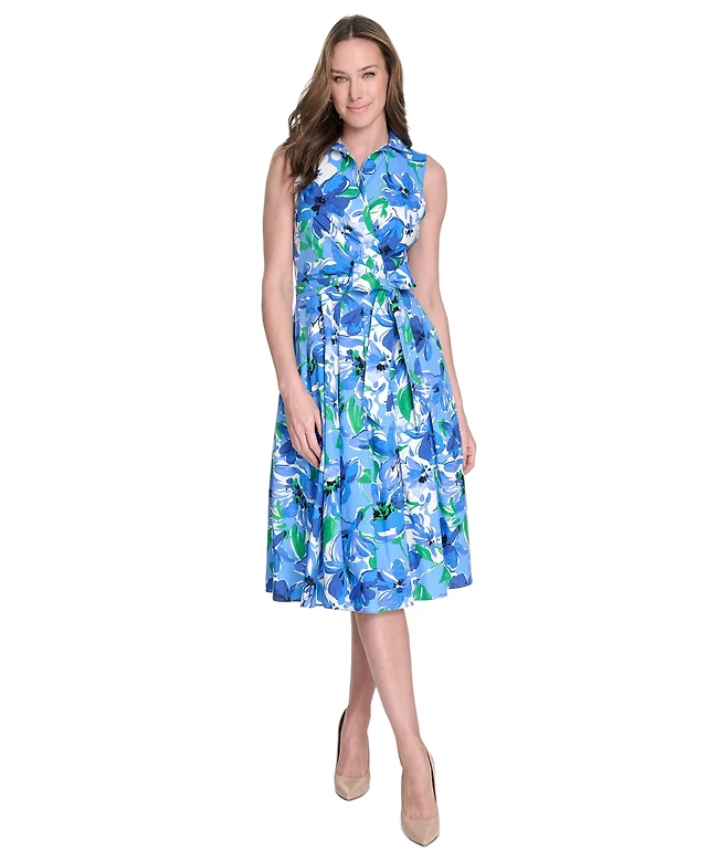 Jessica Howard Women's Cotton Printed Tie-Waist Shirtdress