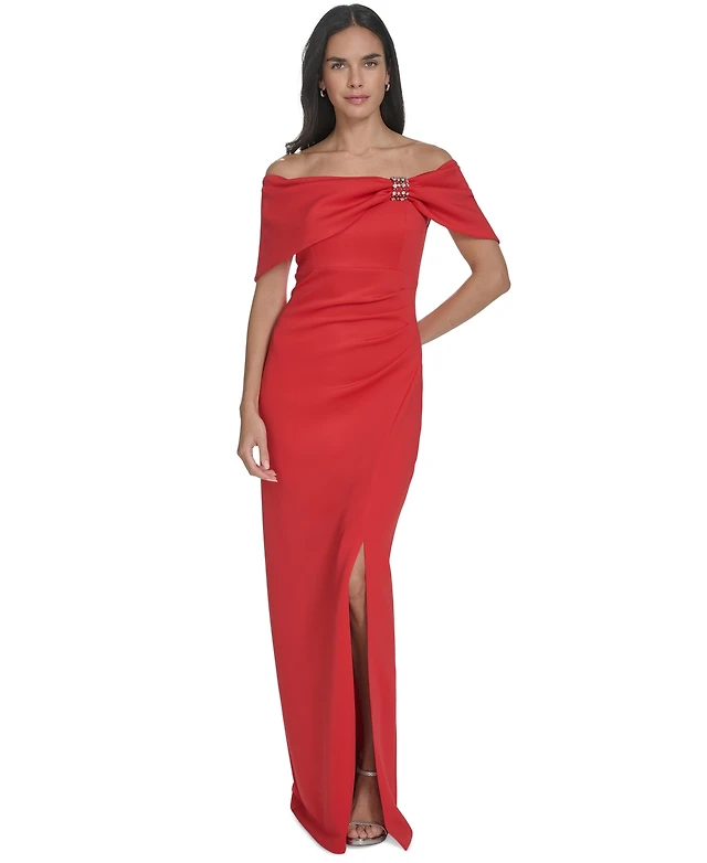 Jessica Howard Petite Embellished Off-The-Shoulder Gown