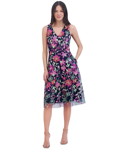 Jessica Howard Petite Embroidered-floral Sleeveless V-neck Fit & Flare Dress