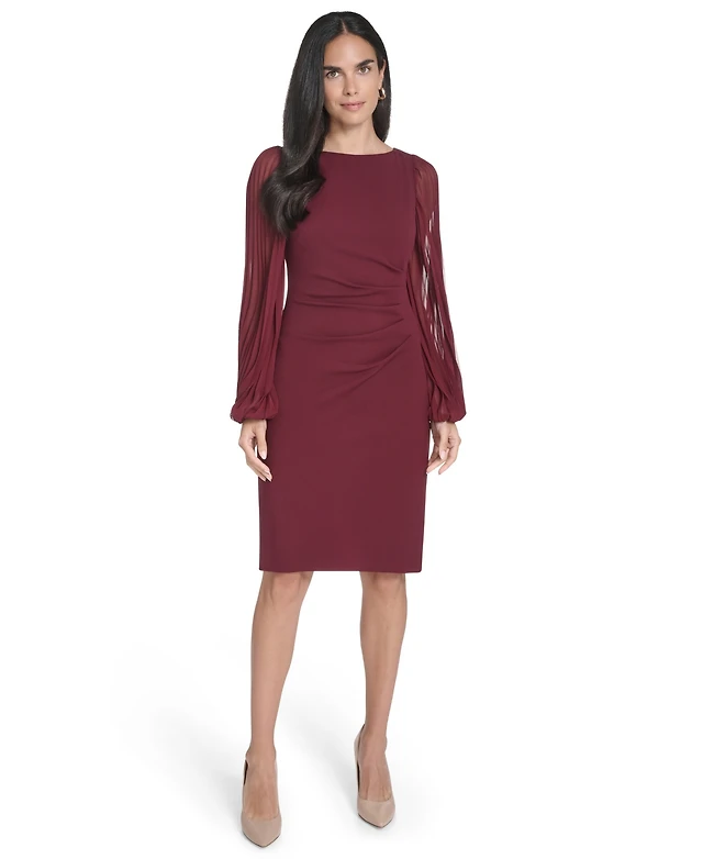 Jessica Howard Petite Side Tuck Long-Sleeve Boat Neck Sheath Dress
