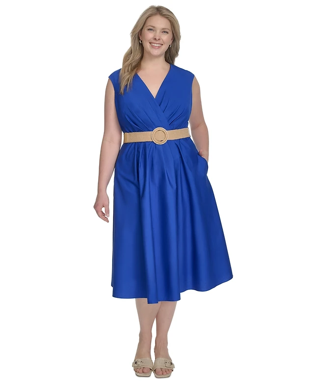 Jessica Howard Plus Belted Sleeveless V-Neck Midi Dress