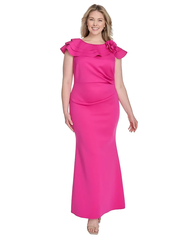 Jessica Howard Plus Size Ruffle-Sleeve Rosette-Trim A-Line Gown