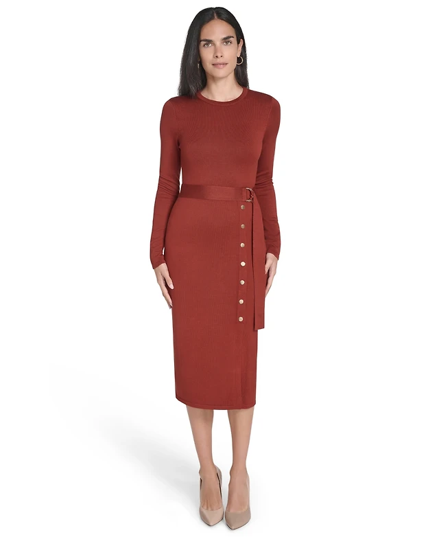Donna Karan New York Women's Long-Sleeve Belted Midi Dress