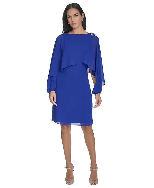 Jessica Howard Women's Long Sleeve Cape-Overlay Shift Dress