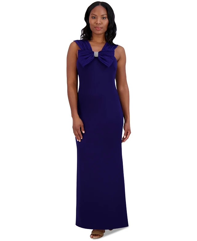 Jessica Howard Women's V-Neck Sleeveless Bow-Trim Gown