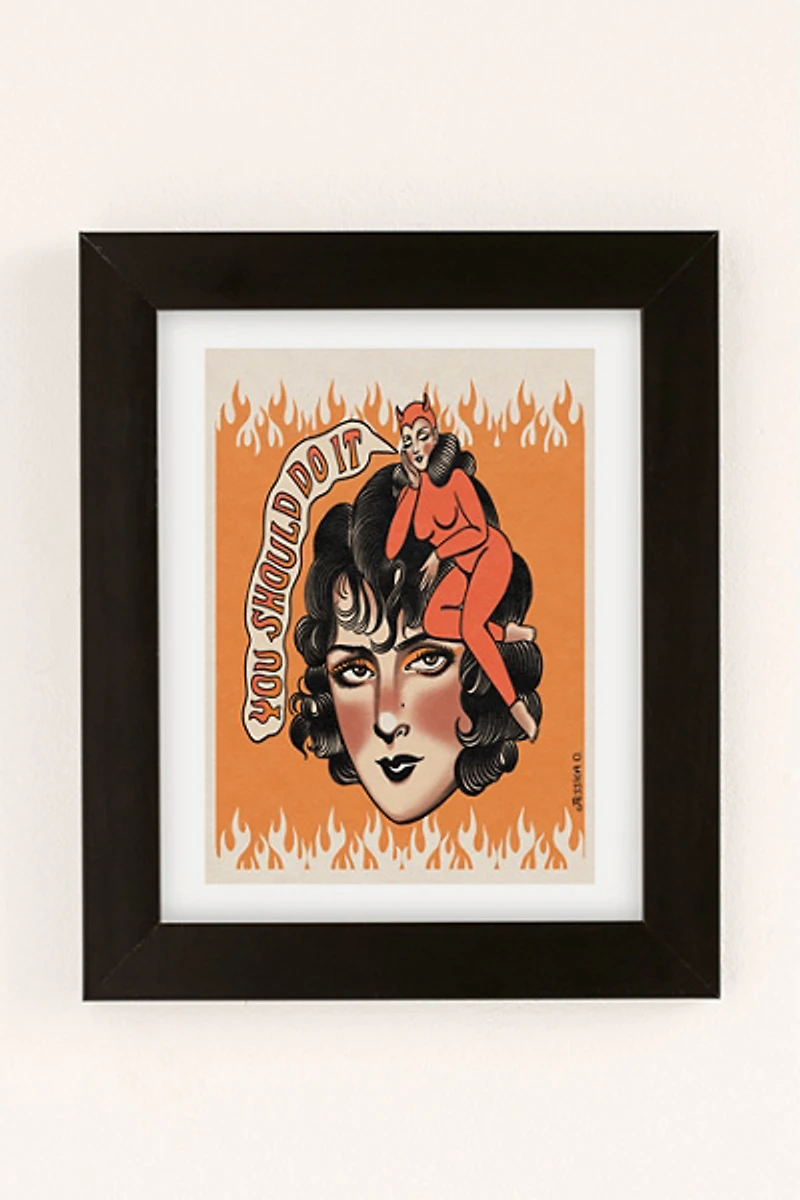 Art print by Jessica O. featuring a traditional tattoo-inspired illustration. Printed on archival paper made from cotton pressed in Italian mills, this high-quality art print is available in sizes and frames just right for your space. First select your frame (or go frameless), then select your size.