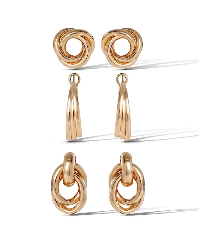 Jessica Simpson 3-Piece Textured Gold-Tone Hoop Earring Set