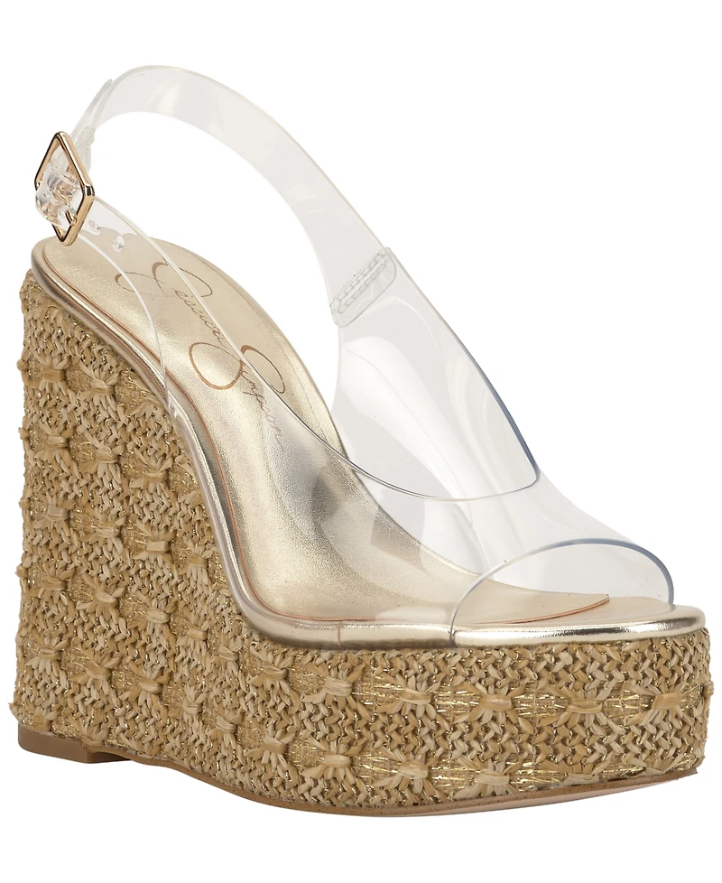 Step into contemporary style with Jessica Simpson Kaliese platform wedge sandals. Peep toes and an adjustable strap provide both fashionable flair and secure, comfortable wear.