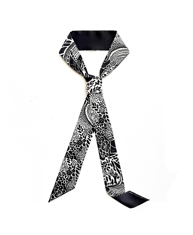 Jessie Zhao New York Silk Skinny Scarf Of Black Garden