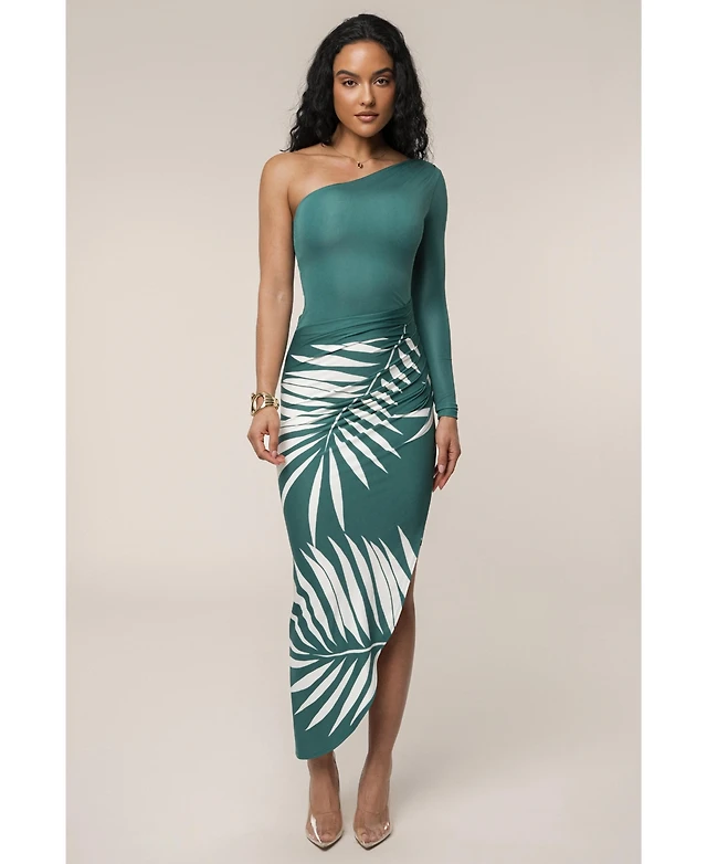 Jluxlabel Women's One Shoulder Palm Print Dress