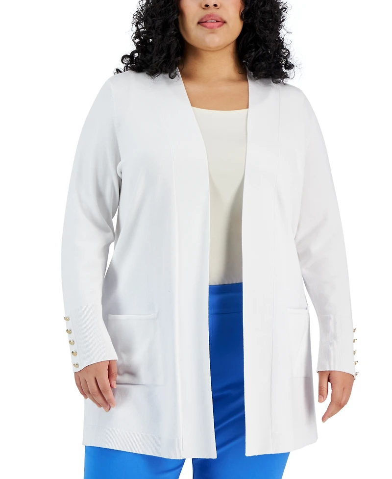 Jm Collection Plus Size Open-Front Long-Sleeve Cardigan, Exclusively at Macy's