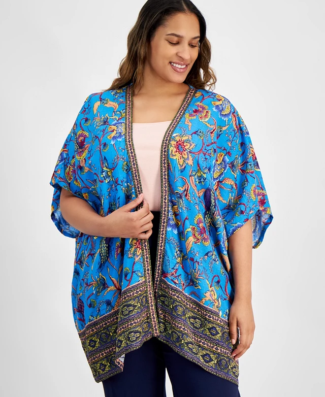 Jm Collection Plus Size Printed Open-Front Kimono Top, Exclusively at Macy's