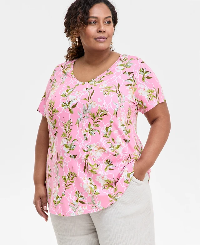 Jm Collection Plus Reve Garden Scoop-Neck T-Shirt, Macy's Exclusive