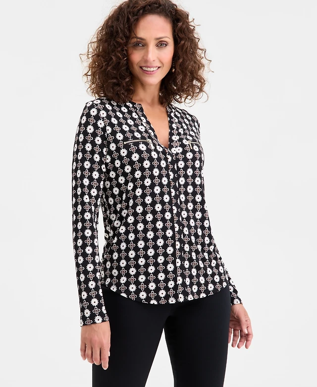 Jm Collection Women's Printed Zip Pocket Top, Macy's Exclusive