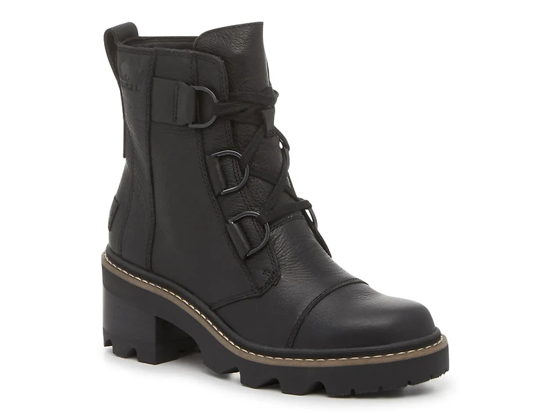 Make sure your steps stay sturdy by rocking the Joan Now combat boots from SOREL. This pair sports an edgy lace-up design with a strong lug sole and a molded heel. Crafted with a waterproof leather material that will keep you comfortable throughout the seasons.