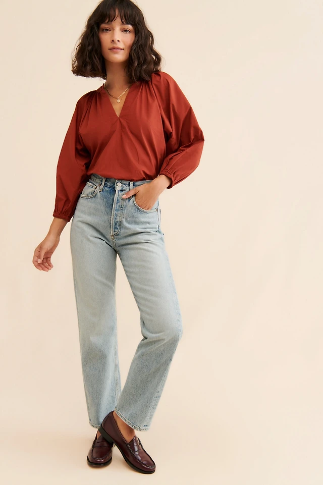 By Anthropologie Waisted Puff-Sleeve Blouse