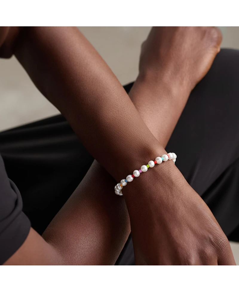 Bring a pop of color to classic pearls with Joey Baby's rainbow bead bracelet.Hand-strung with 7–8 mm freshwater pearls and vibrant glass beads, this design balances playful hues with timeless elegance. Finished with a secure Nordic-style clasp, it's perfect for layering or adding a subtle statement to everyday looks.