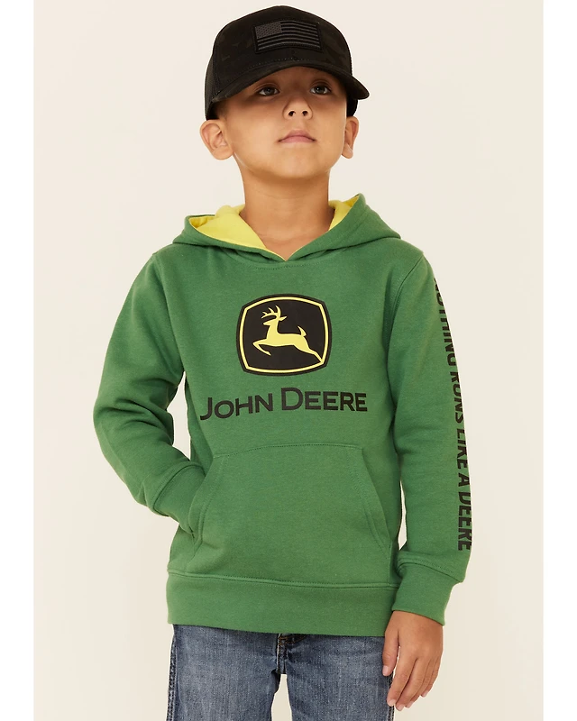 John Deere Boys' (4-7) Green Trademark Logo Sleeve Graphic Hooded Sweatshirt