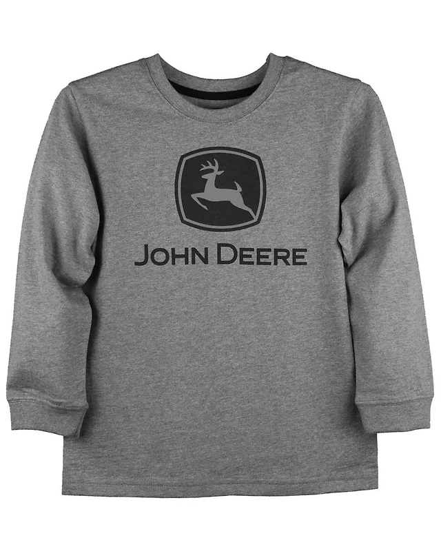 John Deere Boys' (4-7) Heather Grey Trademark Logo Graphic Long Sleeve T-Shirt