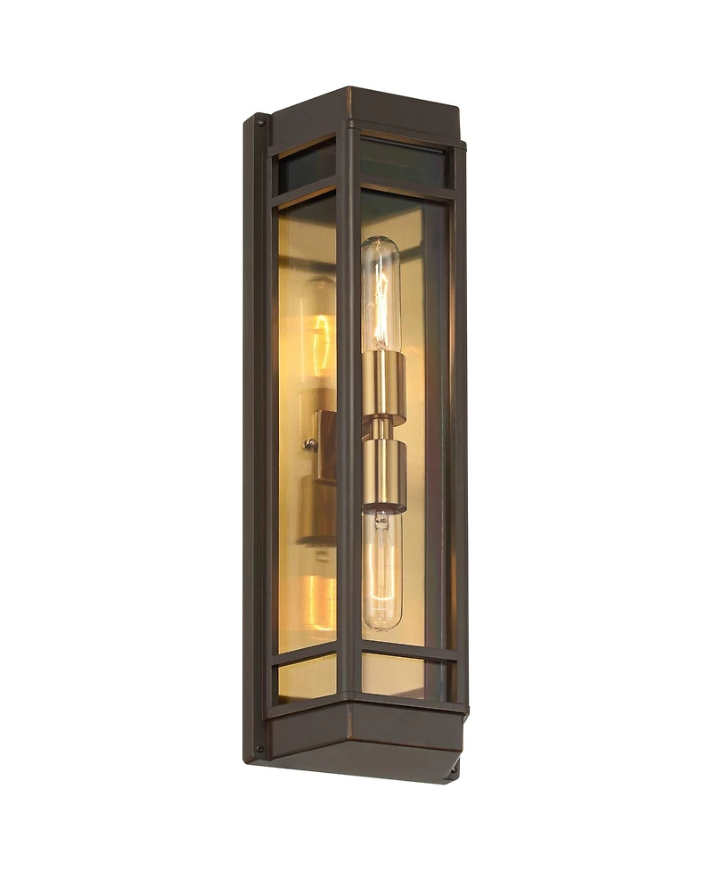 John Timberland Catie High Modern 2-Light Outdoor Wall Light Fixture Mount Porch House Sand Brass Finish Aluminum