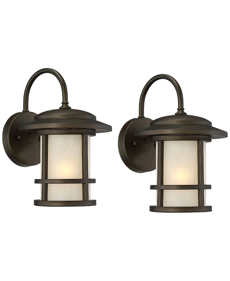 John Timberland Cressona Rustic Mission Outdoor Wall Light Fixtures Set of 2 Oil Rubbed Etched Amber Glass for Post Exterior in Bloomington, MN