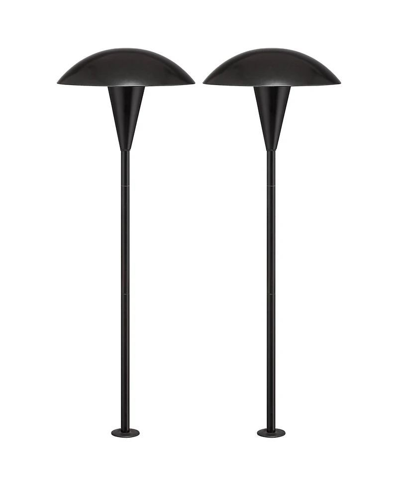These stylish path lights are a perfect choice for your landscape lighting needs. Light up pathways and garden areas to enhance the look and keep things safe. The modern designs were inspired by Mid-Century style and feature a ""mushroom top"" profile in a black finish. The energy-efficient LEDs used have a long life, meaning no more time-consuming bulb changes. And, because it uses so little energy, you can have more lights on your transformer/system.