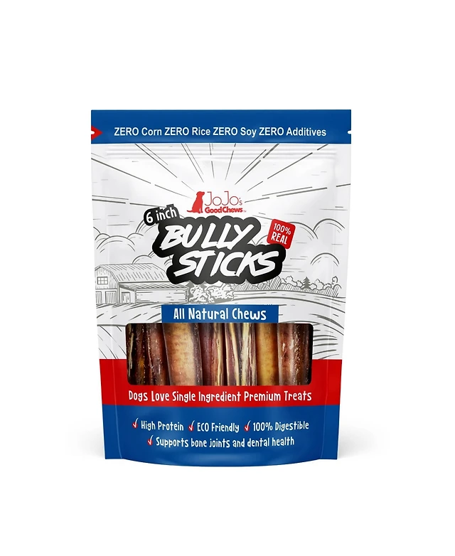 JoJo Modern Pets All-Natural Beef Bully Stick Dog Treats, Premium Snack, High Protein & Long-Lasting Chews – 6" Thick (3-Pack)