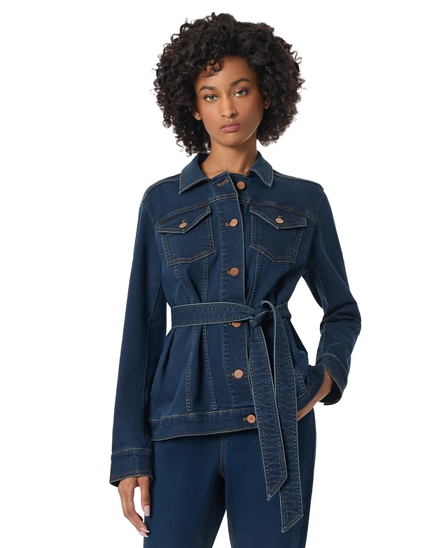 Jones New York Petite Belted Button-Front Trucker Jacket