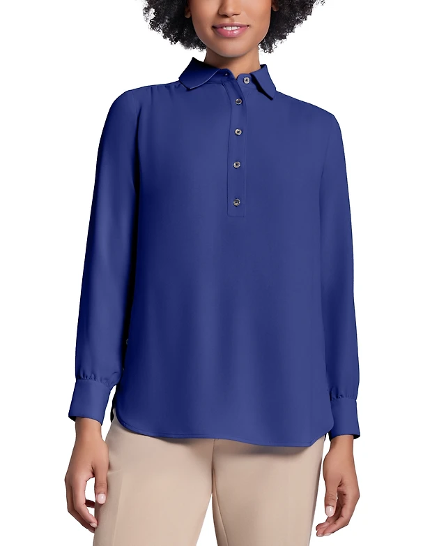 Jones New York Petite Button-Side Collared Top