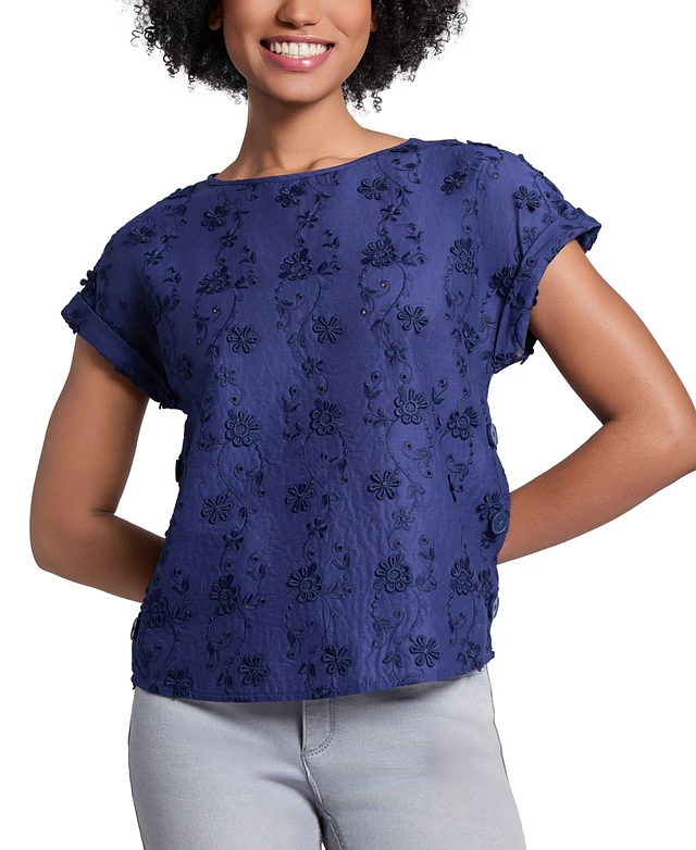 Jones New York Petite Short-Sleeve Embroidered Top