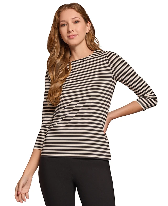 Jones New York Petite Metallic Striped Zip-Neck Top