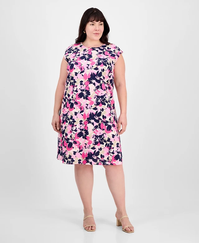 Jones New York Plus Size Floral-Print Linen-Blend Swing Dress